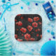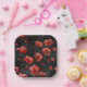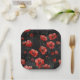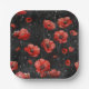 Red poppies on black paper plate