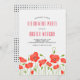 Red poppies "grow" in this simplistic, floral invitation. The card is easy to customise with your wording, font, font colour and choice of six paper types. Not exactly what you're looking for? All our products can be custom designed to meet your needs at no extra charge. Simply contact us at askpixieprints@aol.com