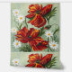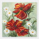 Hand-painted red poppies and white daisies on a soft pastel gray-green background.