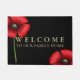 A warm welcome awaits your guests with this red and black welcome doormat. Red poppy flowers on a black background with text you can personalise