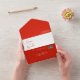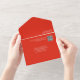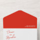 Red poppy floral wedding invitation all in one template with a digital QR code to scan and RSVP online via your website. Design with bright shades of red and watercolor flowers on an off-white background. The back of the tearable card can be edited with your return address so you can add a postal stamp and mail it without an envelope. Personalise it with up to 3 menu options and dietary restrictions. The foldable top has your address and the centre is editable with your guest's address (add it online, add a pre-made label, or handwrite it).