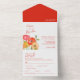Red Poppy Floral QR Code RSVP Wedding All In One Invitation