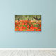 Canvas landscape print of a field with red poppy flowers under old olive trees in an orchard in the countryside of Italy in summer.