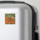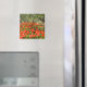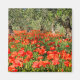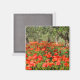 Square photo magnet with a field with red poppy flowers under old olive trees in an orchard in the countryside of Italy in summer.