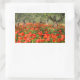 Red poppy flowers under old olive trees rectangular sticker
