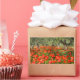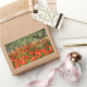 Rectangular photo sticker with a field with red poppy flowers under old olive trees in an orchard in the countryside of Italy in summer.