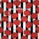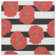 Red Poppy Flowers with Black and White Stripes Fabric