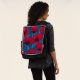 Red poppy garden on blue backpack