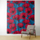 Red poppy garden on blue tapestry