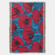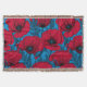Red poppy garden on blue throw blanket