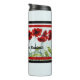 Vibrant red watercolor poppies circle around the pretty drinks container in a line, dancing. This pretty container would make a great gift for thirsty travelers.
