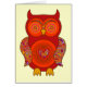A cute cartoon psychedelic owl in red, orange, yellow, purple and blue colours.