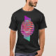 I give wanted to give this a 4 instead of a 5 because these Basic DARK T0shirts run unexpectedly SLIM or Narrow. Which is great if you do not have a potbelly, but I have a paunch. It isn't the shirt's fault that I've got a beer belly. The design and shirt itself is a quality cotton shirt. The color is more of a deep purple, but still a very pretty color. The Basic DARK T-shirts run a bit SLIMMER than the Basic Ts. The neck is a fraction narrower (or seems to be narrower) also. I'm a paunchy middle-aged woman and my neck is 12 inches (31cm) thick and the neckline fell about the same as in the photo of the man, and I had the desire to tug it a bit. So if you're a thick necked man or like loose shirts, be aware these are slimmer shirts. Once I get rid of my lockdown paunch it'll look great. The shirt washed well in cold water with no apparent bleeding. We don't have a dryer, so it hung dry. Did not shrink. Love the colors and the design. The design looks smaller on my shirt than it does on the model on-line. But still, it looks good on the shirt. The printing looks as it does on the model, just the size seems fractionally smaller. Washed garment in cold water, hung dry and design appeared unaffected.