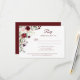 Lush bouquets of peonies, roses, wildflowers and matching greenery RSVP. The back of the card is a dark red. There is a matching invitation available.