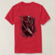 I give wanted to give this a 4 instead of a 5 because these Basic DARK T0shirts run unexpectedly SLIM or Narrow. Which is great if you do not have a potbelly, but I have a paunch. It isn't the shirt's fault that I've got a beer belly. The design and shirt itself is a quality cotton shirt. The color is more of a deep purple, but still a very pretty color. The Basic DARK T-shirts run a bit SLIMMER than the Basic Ts. The neck is a fraction narrower (or seems to be narrower) also. I'm a paunchy middle-aged woman and my neck is 12 inches (31cm) thick and the neckline fell about the same as in the photo of the man, and I had the desire to tug it a bit. So if you're a thick necked man or like loose shirts, be aware these are slimmer shirts. Once I get rid of my lockdown paunch it'll look great. The shirt washed well in cold water with no apparent bleeding. We don't have a dryer, so it hung dry. Did not shrink. Love the colors and the design. The design looks smaller on my shirt than it does on the model on-line. But still, it looks good on the shirt. The printing looks as it does on the model, just the size seems fractionally smaller. Washed garment in cold water, hung dry and design appeared unaffected.
