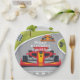 What a fun way to celebrate your child's 3rd birthday! This birthday party plates features a red race car driving across a racetrack with the number 3 written in black lettering, and a personalised happy birthday to your child.