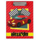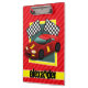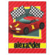Cool, colourful kid's race car, red, yellow, chequered flag, auto racing design on Scarlet Red Stripes pattern. Perfect gift for baby, toddler, kids, children, teens, or adults! Personalised the design template by adding a child's name or custom text. Visit our store, Birthday Party House, for more great customisable boy products!