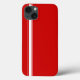 A bright red iPhone case with white pin striping down the side. For the man in your life that loves that hot rod red with pinstripes.