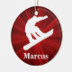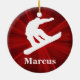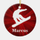 Add your own custom personalised name or text to this red and white snowboarding Christmas tree ornament. Great for snowboarders. Makes a great gift and keepsake for anyone who loves to snowboard.