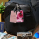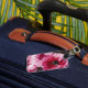 A digital painting of a ranunculus flower is printed on the front of the luggage tag. Please using the editing tool and change the text on the back of the luggage tag to your contact information.