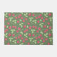 Charming painted rosy red raspberries and leaves twining over a dark green floor mat.