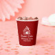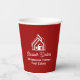 This professional realtor paper cup is custom made with your real estate company name under the modern cursive script for an open house. This chic custom red realty business party decor features a house logo image for home builder or realty agent company marketing.