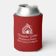 This professional realtor can cooler is custom made with your real estate company name under the modern cursive script for an open house. These bold custom red realty business promotional items feature a house logo image for home builder or realty agent company marketing.