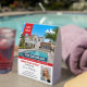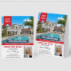 Market your real estate business by showing off the property you just sold. Personalize the paper table tent sign with a photo of the recently sold property, your realtor business logo, a profile photo, and contact information. Just sold in white against eye-catching red.