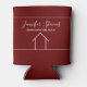 This modern, red realtor can cooler is custom made with your realty company name under the the agent name in chic typography. This cool marketing gift features a simple line drawing of a house. Contemporary realty swag to send to a potential homebuyer or client who is listing their home.