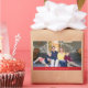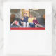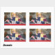 Red rectangle Merry Christmas photo stickers with changeable text and photo.