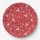 Red Reindeer Pattern Merry Christmas Snowflakes Paper Plate
