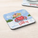 Personalise this cute nostalgic "Bringing home the tree" Christmas scene design on this set of plastic coasters. Edit with your own text, date, icons or other elements in the easy zazzle editor. Little red retro car is piled with festive oversized gifts and tree on its roof amidst a swirl of snow. Part of a large collection of coordinating items in this same design at www.zazzle/pinkladybugs