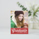 Announce your graduation to family and friends with this customisable graduation postcard. It features a white retro script typography on a red background. Personalise this red graduation announcement postcard by adding your photo, name and school name. This photo graduation announcement postcard is perfect for high school or college graduations.