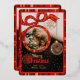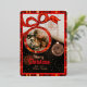 Red Ribbon Plaid Gold Foil Single Photo Christmas Holiday Card