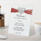 Red Ribbon Silver Swans Wedding Safety Pedestal Sign