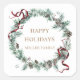 Red Ribbon Winter Greenery Monogram Square Sticker