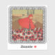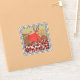 This vinyl sticker has little red riding hood wearing her red cape picking flowers in a field of red poppies with the wolf on a hill behind her in an ornate black frame.