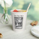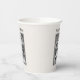 These paper cups are white with a vintage drawing in black and white inside an ornate black frame of Little Red Riding hood talking to the wolf in the forest under trees on the front and back. Customise your text with the templates on the front and back.
