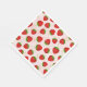 Paper napkins in a scattered pattern of red ripe strawberries on a red and white pin dot background