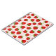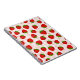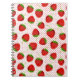 Notebook in a scattered pattern of red ripe strawberries on a red and white pin dot background