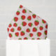 Tissue paper in a scattered pattern of red ripe strawberries on a red and white pin dot background