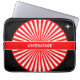 Red rising sun rays on white and black background Laptop sleeve. Text ready to be personalised.