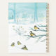 Winter birds in a snowy forest on a cold sunny day. Tit birds, Robin redbreasts and Common chaffinch - Picture book Illustration.