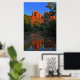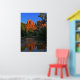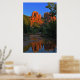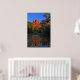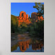 Cathedral Rock reflecting in Oak Creek make this photograph of Red Rock Crossing at sunset a glowing success. This view is taken from Crescent Moon Park and is a typical spot for Sedona weddings. The orange glow is so bright that it takes on a fake appearance in this photo, however, this is not a faked or altered image. If you are looking for a traditional photograph, you may be happier with one of our other posters that have a more believeable colour on the rocks.