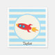 Red Rocket Space Ship; Light Blue Stripes Napkin