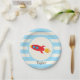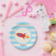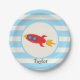 Red Rocket Space Ship; Light Blue Stripes Paper Plate