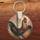 Red Rooster, Brown Hen and Baby Chicks on Straw Key Ring