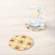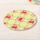 Red Rooster Medallion Pattern on Yellow Round Paper Coaster