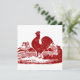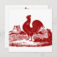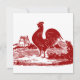 Elegant vintage design featuring a red rooster with a farmhouse in the background.
