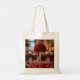 This tote bag shows bold red roses.